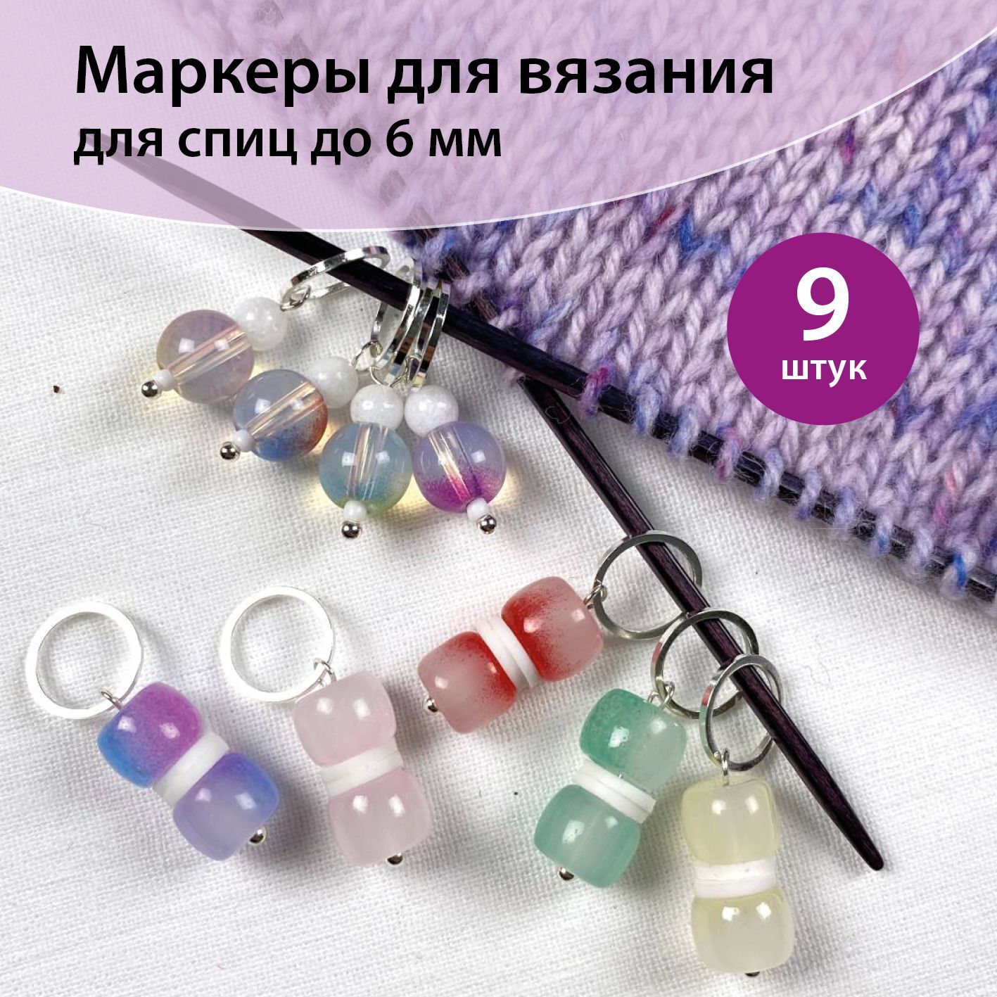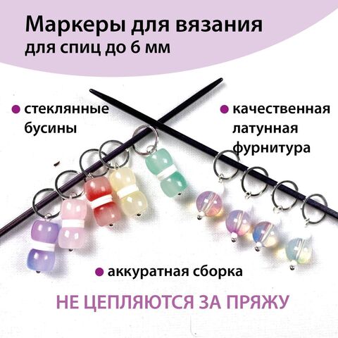 В наборе 9 маркеров на тонких серебристых колечках (подходят для спиц до 6 мм):